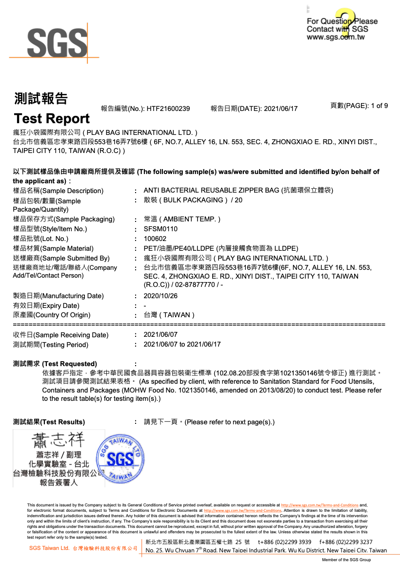 - 美國食品衛生標準FDA CFR 21 part.177 (Cookie Monster)