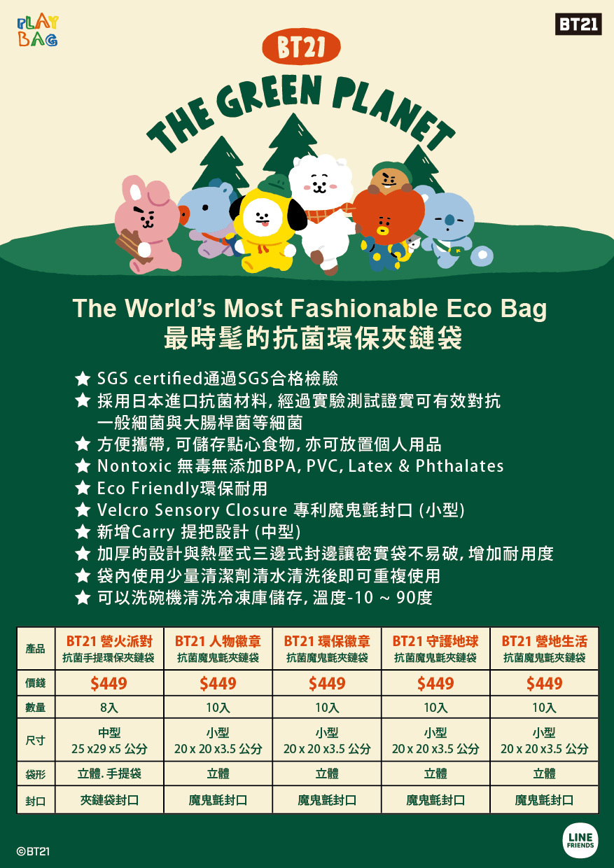 與BT21 宇宙明星一起重複使用,抑菌環保,垃圾減量,守護地球